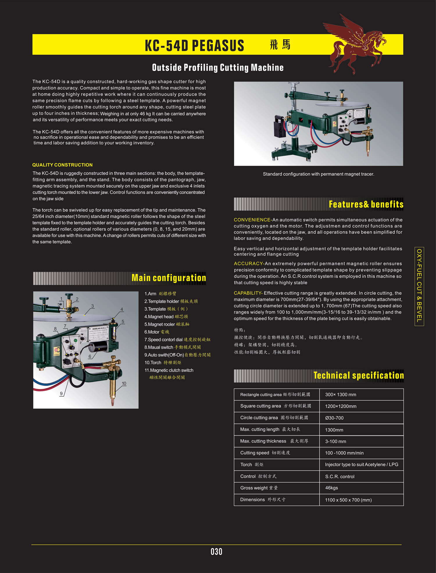 The KC-54D is a quality constructed, hard-working gas shape cutter for high production accuracy, compact and simple to operate, this fine Gazcut machine is mostly used for doing highly repetitive work where it can continuously produce the same precision flame cuts by following a steel template.